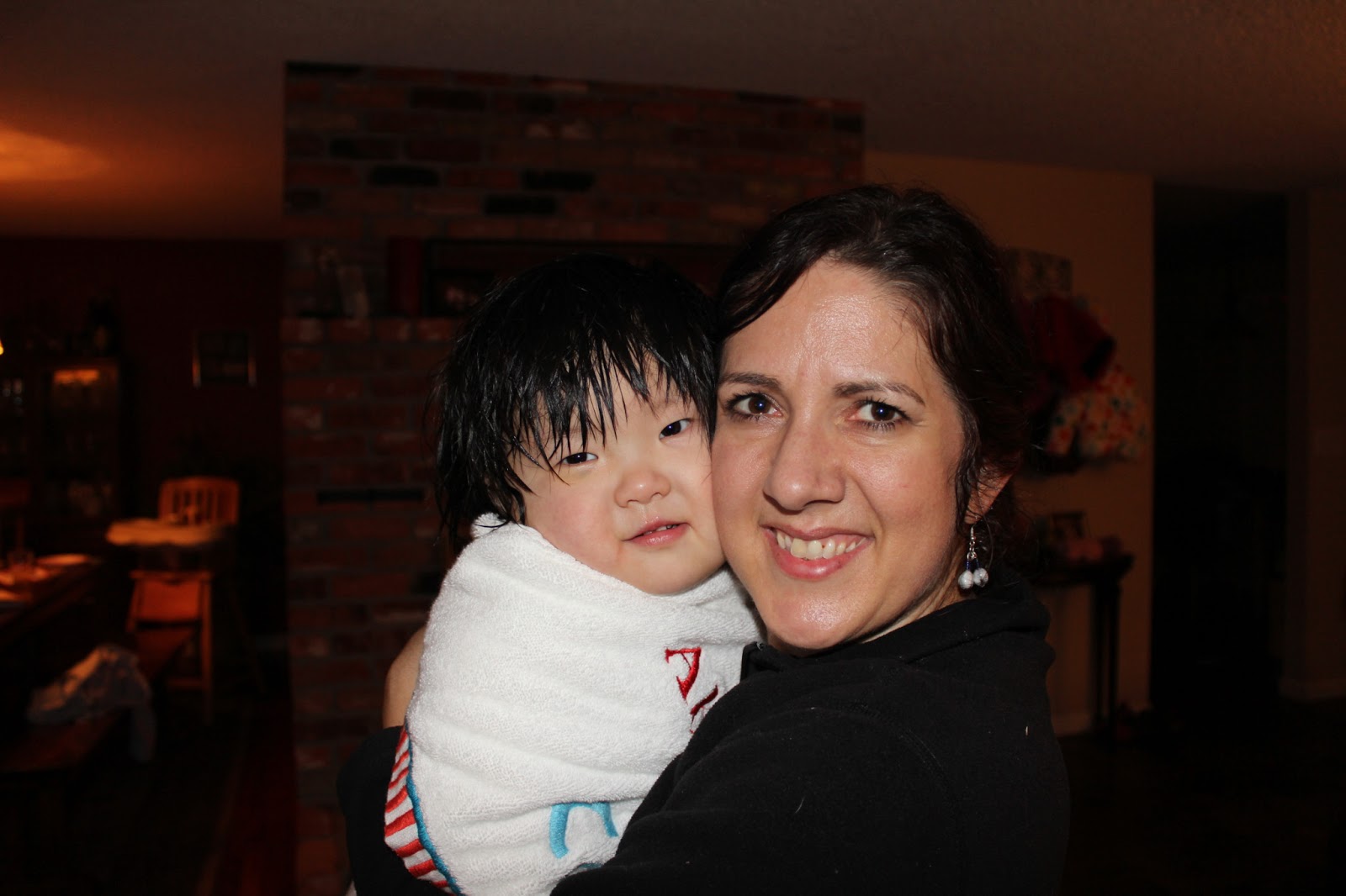 | First haircut! (while eating an orange and watching Veggie Tales) :) |